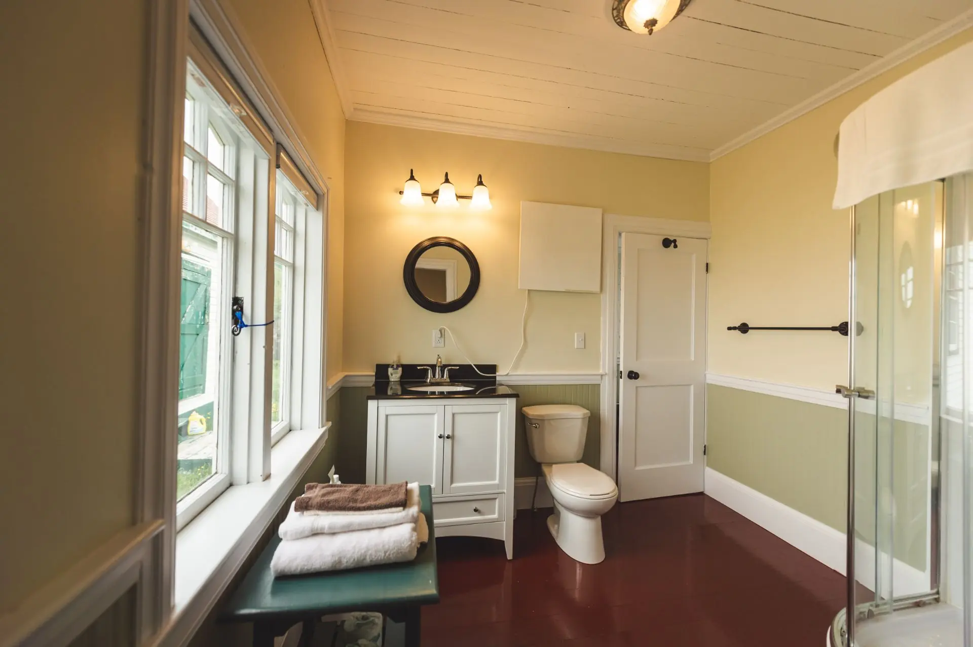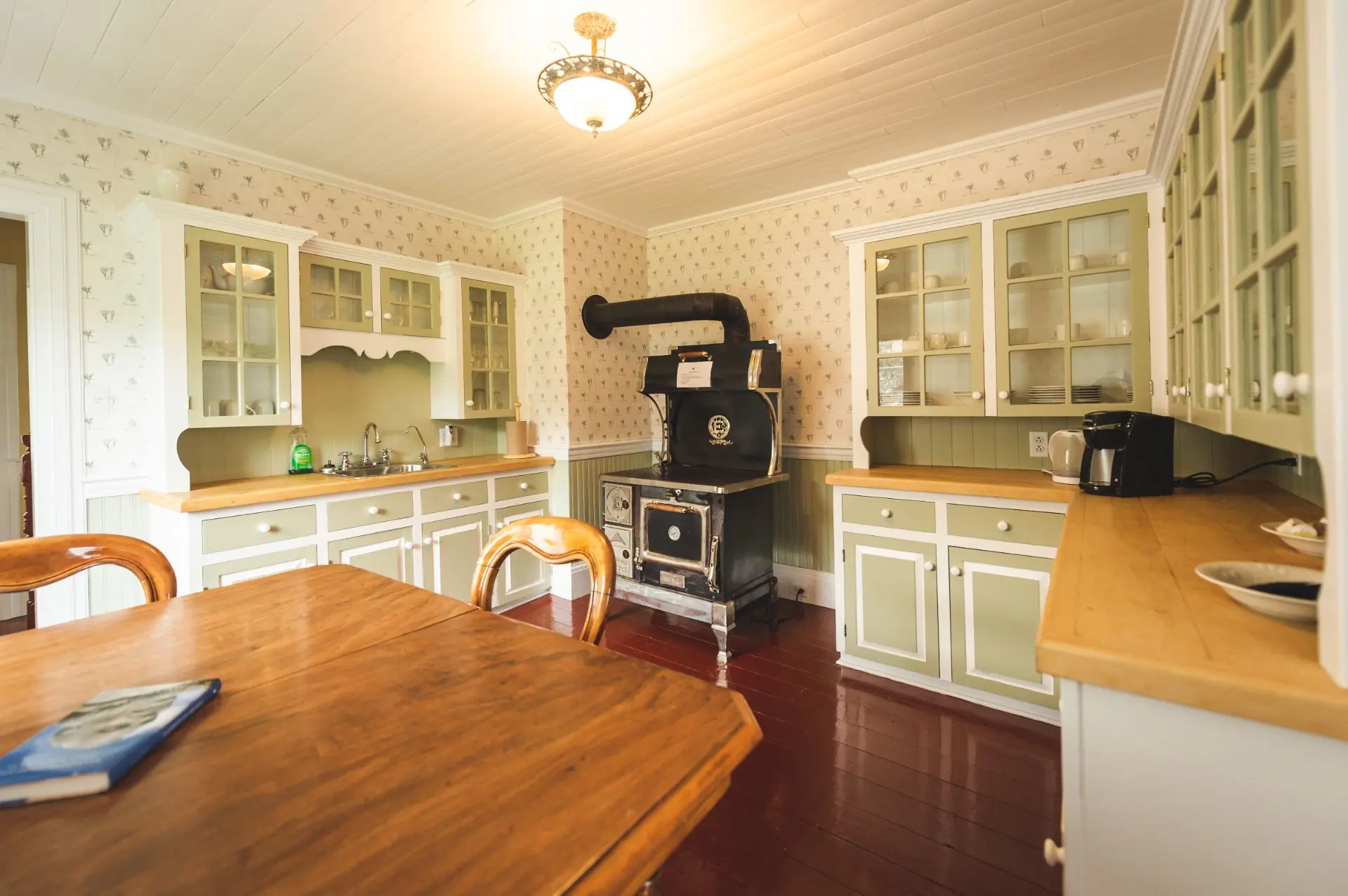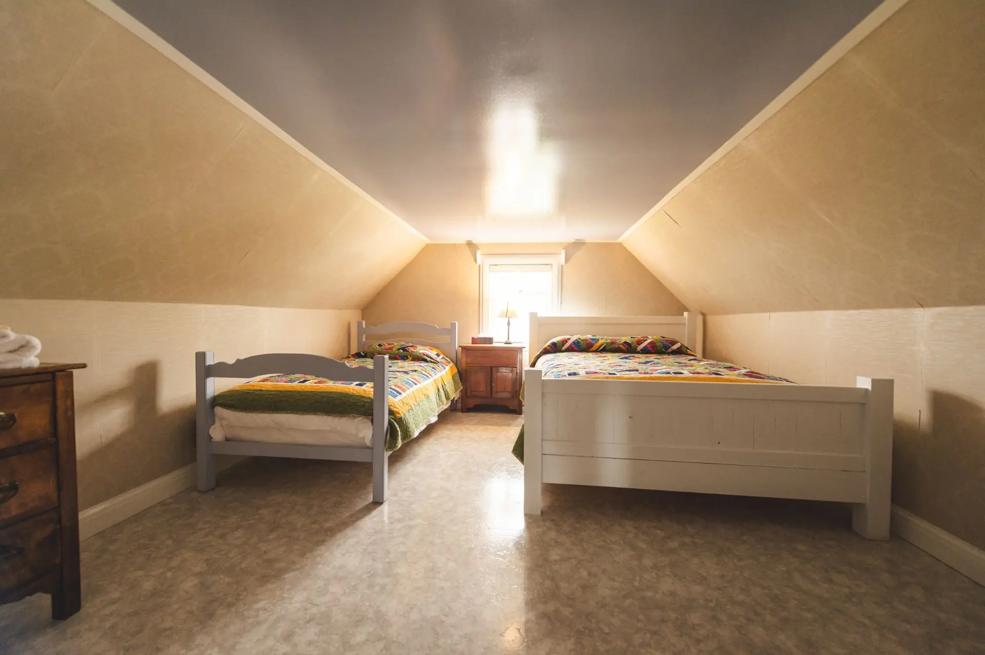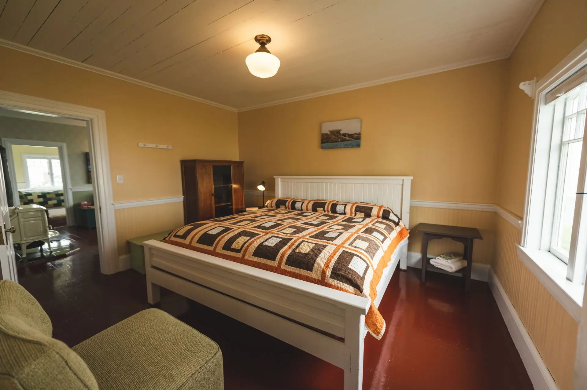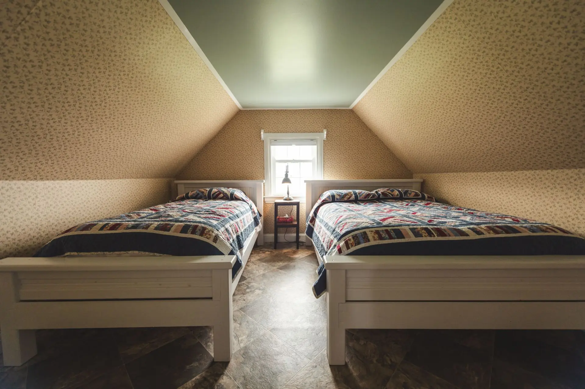 The Cottage includes 2 bedrooms with king beds on the ground floor. The upper floor has 2 bedrooms with a double and twin bed in each. Upstairs also has an alcove nook with 2 single beds that is popular with children.